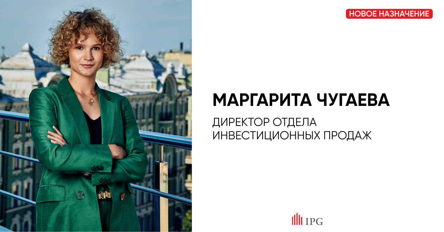 IPG.Estate объявляет о назначении Маргариты Чугаевой на должность директора отдела инвестиционных продаж. Это ключевое кадровое решение направлено на усиление позиций компании на рынке инвестиций в коммерческую недвижимость Санкт-Петербурга и регионов в условиях трансформирующегося спроса.